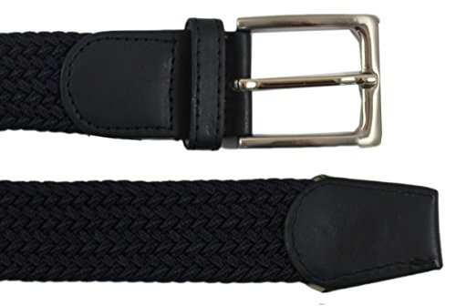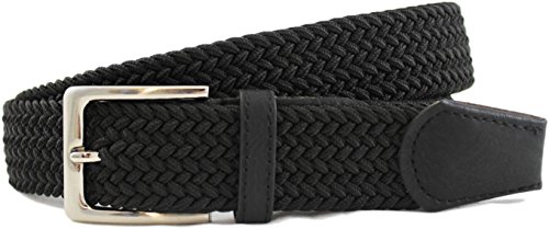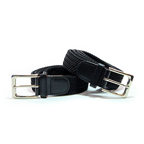 Cintura intrecciata elastica, comoda cintura elasticizzata, in tessuto, intrecciata, con pelle in poliuretano (PU), per uomo e donna Nero Nero 95 B.W. = Gesamtlänge 110 Cm.