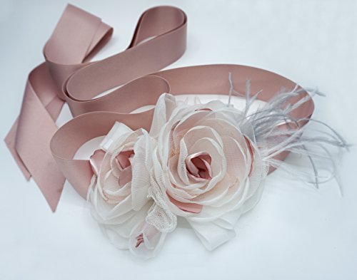 Cintura per matrimonio: raso, piuma e tulle, colore: rosa chiaro e avorio