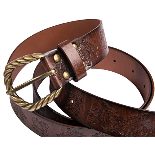 Cintura medievale in finta pelle, cintura da cavaliere rinascimentale, cinture in rilievo con motivo drago vichingo, Accessori per costumi cosplay vintage per uomo (Marrone)