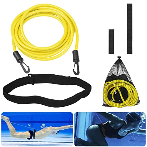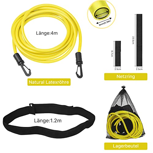 Cintura da Nuoto Regolabile, 4 m di Corda Elastica per L'allenamento, Cintura di Resistenza per Piscina, Cintura Resistente al Nuoto, Cintura per Allenamento da Nuoto per Bambini e Adulti (Giallo)