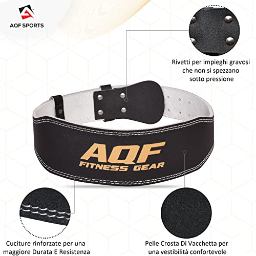 Cintura in Pelle Artigianale: AQF Cintura Imbottita in Pelle per pesi palestra, larga 4 pollici, splendidamente realizzata a mano con un design sagomato per fornire un supporto un comfort ottimali durante il sollevamento pesi. Cinta Palestra progettata per fornire durata, resistenza e un migliore supporto lombare durante allenamenti, sia per gli uomini che per donne, durante l'allenamento, deadlifting, squat, sollevamento olimpico e cross-fitness, oltre ad altre routine di esercizio.