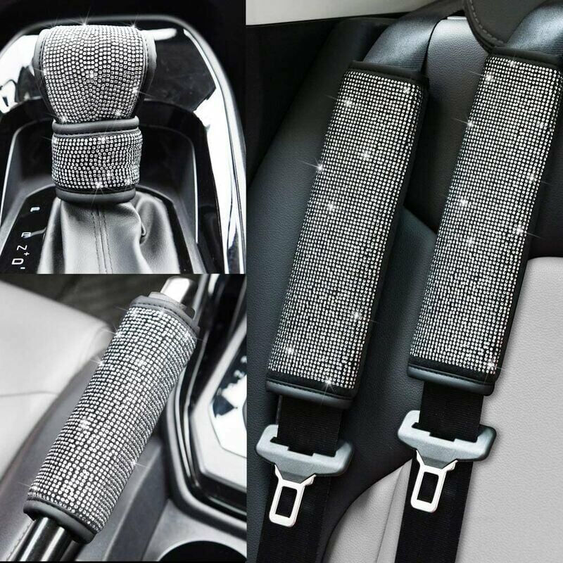 Il materiale morbido non sbiadisce - : questo set di spalline con cinturino è realizzato in tessuto di alta qualità e strass Bling Bling. 4 pezzi/set, riceverai 1 copri freno a mano, 2 copri cintura di sicurezza e 1 copri cambio per soddisfare le tue diverse esigenze di decorazione dell'auto. brillare sotto le luci, brillare attraverso il parabrezza per illuminare la tua auto. Un ottimo modo per aggiornare gli interni della tua auto. Regalo perfetto per donne e ragazze 【Esperienza di guida confortevole】: questo set di copricintura con strass è appositamente progettato per donne e bambini adulti per fornire una migliore ammortizzazione e proteggere le spalle dei membri della famiglia durante le fermate di emergenza o gli incidenti. 【Universale e versatile】: la protezione universale per cintura di sicurezza è progettata per adattarsi alla maggior parte dei tipi di cinture di sicurezza e può anche essere inserita nello zaino, nel bagaglio, nella borsa della fotocamera e nel laptop o in