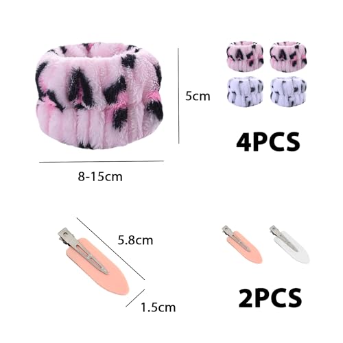 Contenuto della confezione: riceverete 4 asciugamani da polso con una dimensione di circa 5,5 x 10 cm e 2 fermagli per capelli. Gli asciugamani da polso e i fermagli per capelli sono disponibili nei colori bianco e rosa a scelta. La combinazione e la quantità del set soddisfano le vostre esigenze quotidiane.