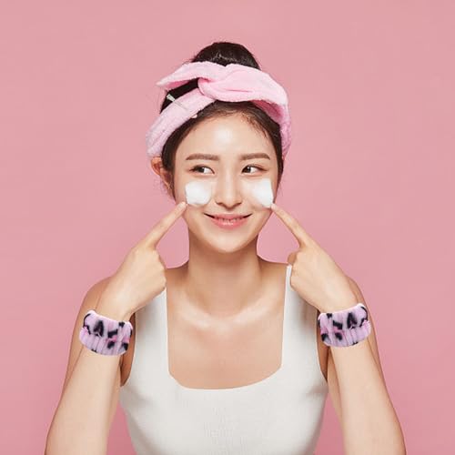 Set di 4 cinturini per il lavaggio del viso con 2 fermagli per capelli, asciugamano da polso impermeabile, fascia elastica per il polso, per uomini e donne (bianco, rosa)