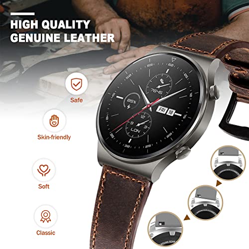 Cinturino Compatibile con Huawei Watch GT 2 Pro/GT 3 46mm/GT 2 46mm/GT/GT 2e/3/3 Pro, Cinturino in Pelle 22mm Cinturini di Ricambio per Galaxy Watch 46mm/Galaxy Watch 3 45mm/Gear S3 Frontier (Caffè)