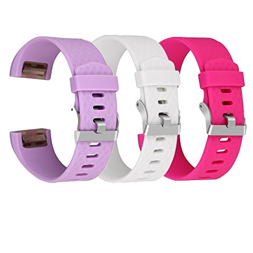 Cinturino per Fitbit Charge 2, CAM-ULATA Morbido Sportivo Ricambio Regolabile Cinturino di Silicone per Fitbit Charge 2 Braccialetto, Lavanda + Bianco + Rosso