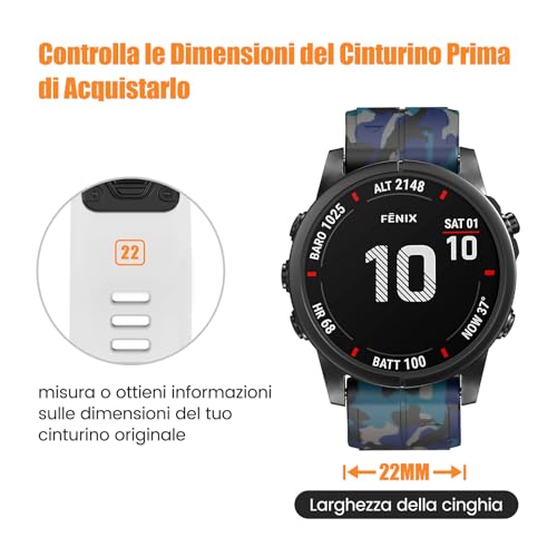 [Modelli disponibili] Questo cinturino orologio 22mm è compatibile con Garmin Fenix5/5 Plus/6/6 Pro/7/7 Pro, Forerunner935/945/955/745, Approach S60/S62, Instinct/Instinct 2/Esports, serie MARQ.