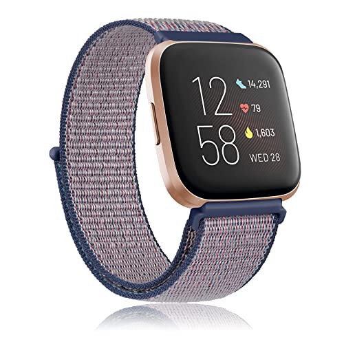 AK Cinturino in nylon compatibile con Fitbit Versa 2, cinturino per Fitbit Versa, morbido e regolabile, cinturino di ricambio per uomo e donna (blu navy)