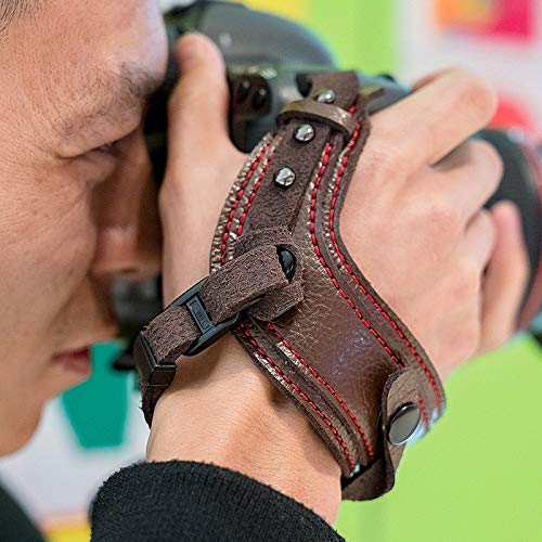 LXH - Cinturino da polso in pelle per fotocamera DSLR, con vite da 1/4", compatibile con Sony A7R3, Nikon D800, colore: Nero