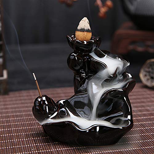 CINY Bruciatore di Incenso a Riflusso, Fornello In Ceramica Per Bruciatore Di Incenso, Stile Loto, Decorazioni Per La Casa Con Ornamento Per Aromaterapia Con 10 Coni Di Incenso a Riflusso (Nero)