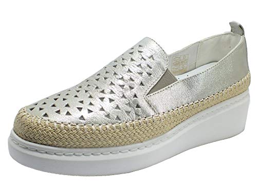 Cinzia Soft IV12712 Silver Nature Mocassini Donna Pelle Traforata Argento Zeppa Effetto Corda (Taglia 40)