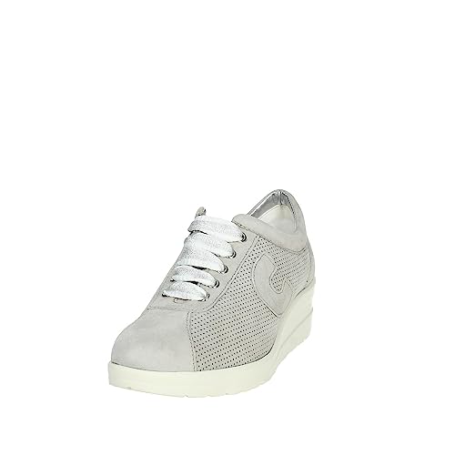 CINZIA SOFT IV5757 Sneakers da Passeggio in Morbida Pelle Scamosciata Traforata Blu O Beige (Beige 38 EU)
