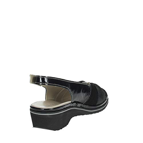 CINZIA SOFT, Sandali Donna Comfort in Pelle Nero, Zeppa Bassa, Pianta Larga, 1141