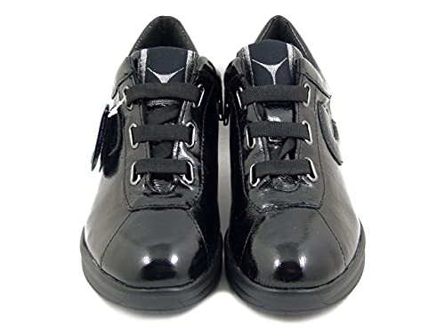 CINZIA SOFT, Sneaker Donna Comfort con Cerniera in Pelle Lucida Nero, Zeppa Bassa, Plantare Estraibile, 14140