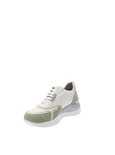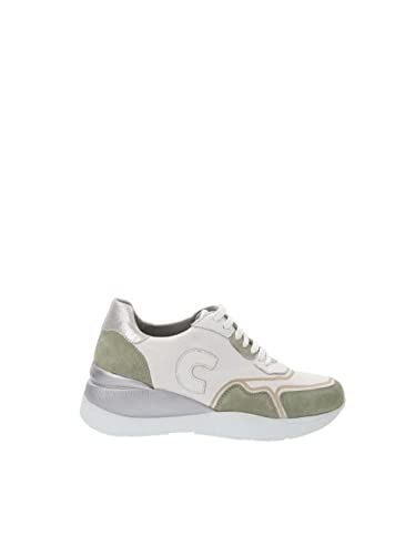 CINZIA SOFT, Sneaker Donna in Pelle Bianco e Verde, Zeppa Media 5 cm, Plantare Estraibile, 16862