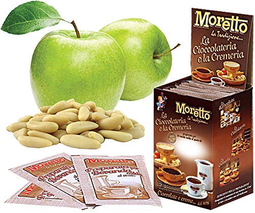 Cioccolata calda in tazza - MORETTO - gusto CIOCCOLATO e MELA con PINOLI - 1 scatola con 12 bustine