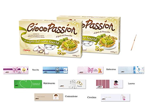 CIOCOPASSION CRISPO CONFETTI PISTACCHIO 2 KG + 100 BIGLIETTINI BOMBONIERE SCELTA