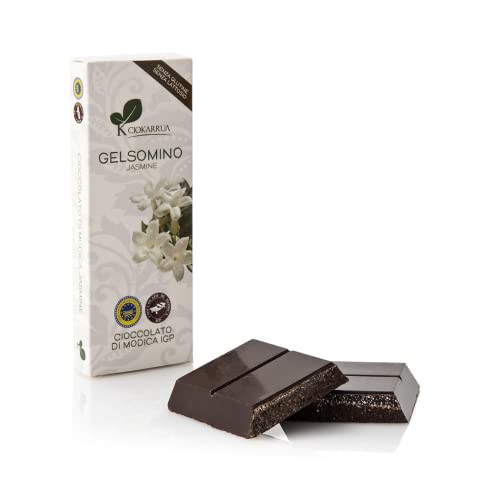 Ciokarrua | Cioccolato di Modica Gelsomino | Cioccolato Grezzo Lavorato Modica IGP | Tavoletta Cioccolato Senza Lattosio | Cioccolata 1 Tavoletta - 100 Grammi