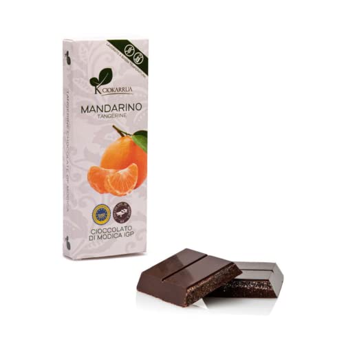 Ciokarrua | Cioccolato di Modica Mandarino | Cioccolato Grezzo Lavorato Modica IGP | Tavoletta Cioccolato Senza Lattosio | 1 Tavoletta al Mandarino - 100 Gr.