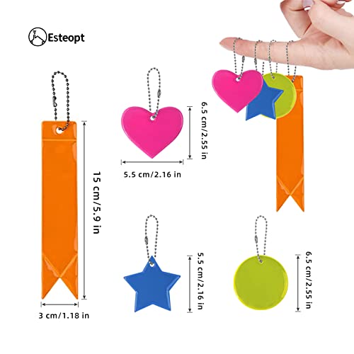 La confezione include: un set di 24 riflettori in PVC è sufficiente per l'uso quotidiano. I nostri ciondoli riflettenti sono disponibili in 4 versioni: cuore, stella, rotondo e rettangolare. I ciondoli sono disponibili in 6 colori: giallo fluorescente, giallo arancione, bianco argento, verde fluorescente, azzurro e rosa. È possibile regolare i colori in base ai vestiti.