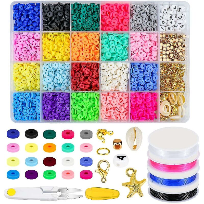 Compreso tutto il necessario - - una scatola di circa 4080 perline piatte di argilla e ciondoli in 20 colori (inclusi ciondoli, anelli per saltare, perline con lettere casuali, fermagli a moschettone, ecc.), 4 rotoli di cordino elastico da 5 m, forbici (colori casuali), per soddisfare tutte le tue esigenze di creazione di gioielli. [dimensioni e bel colore] - diametro del tallone 6 mm, diametro del foro 2 mm. Abbiamo selezionato per te 20 diversi colori alla moda. Ogni colore è in una piccola griglia. Tutte le perline e le decorazioni sono conservate in una scatola di plastica da 26 griglie, quindi non le confonderai. [materiale] - questi chip Blackstone sono realizzati in argilla polimerica ecologica, di colore brillante, di consistenza leggera e comodi da indossare. Suggerimento: poiché contiene piccole parti, i bambini dovrebbero usarlo sotto la supervisione di un adulto per evitare di mangiare per errore. [Corda elastica e forbici] - 4 rotoli di corda elastica 4 colori