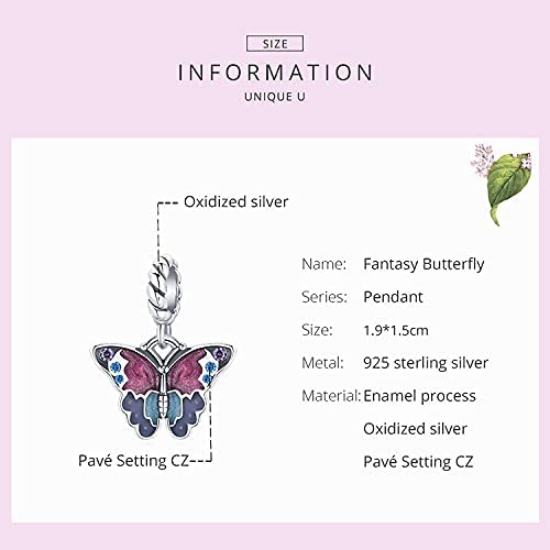 Ciondoli a forma di farfalla in argento sterling 925 con ciondolo a forma di farfalla viola, compatibile con bracciale Pandora, regalo per donna e ragazza