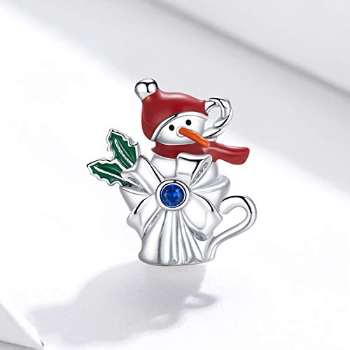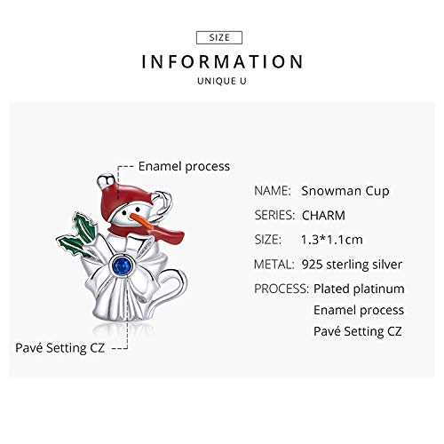 Ciondoli a forma di tazza di pupazzo di neve in argento sterling 925, compatibile con bracciali Pandora, collana, regalo per ragazze da donna
