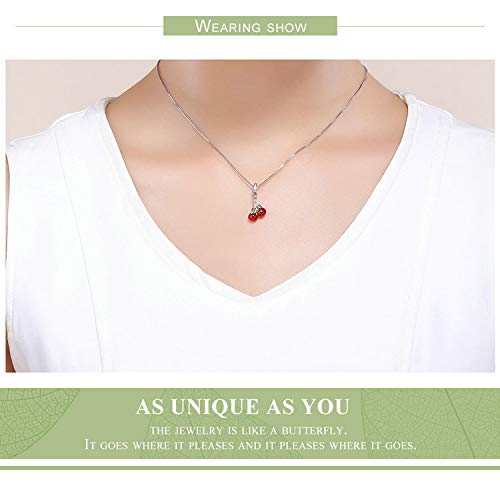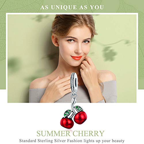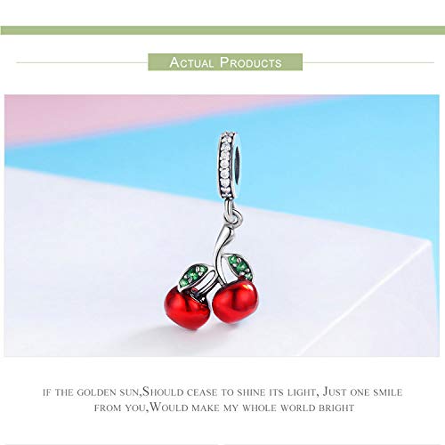 Ciondolo in argento Sterling 925 con ciliegie rosse e ciliegie smaltate, adatto a braccialetti e collane da donna