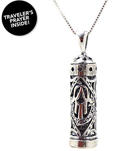 ★ Ciondolo a forma di scatola di preghiera in argento Sterling con preghiera da viaggiatore: un ciondolo unico in filigrana mediorientale, con preghiera del viaggiatore in pergamena e preghiera del viaggiatore.
