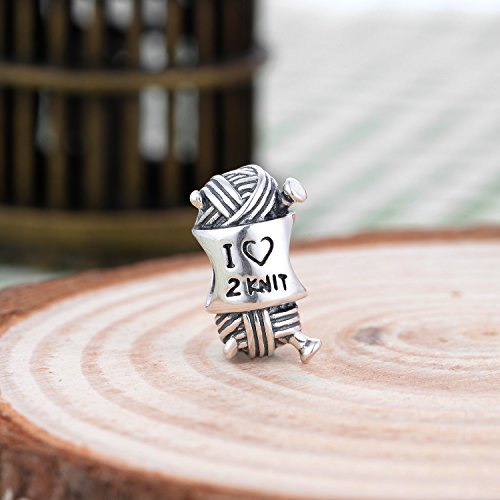 Ciondolo, per bracciali con Scritta I Love To Knit, in Argento Sterling 925, Sacchetto Regalo