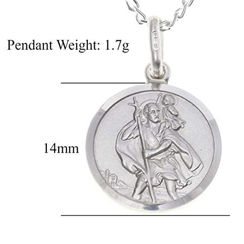 Dimensioni perfette: diametro del ciondolo di San Cristoforo: 14 mm, peso del medaglione di San Cristoforo: 1,7 g, viene fornito su una catena in argento Sterling 925 da 45,7 cm, progettata pensando a donne e bambini, e dispone di una chiusura ad anello a molla per un facile utilizzo. Sia il ciondolo che la catena sono ipoallergenici, rendendoli adatti alla maggior parte dei tipi di pelle.