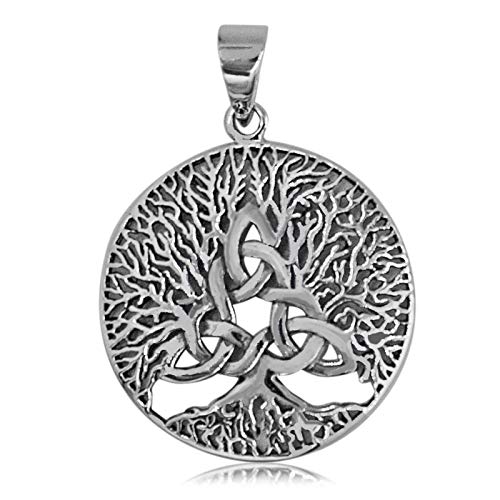 Ciondolo in argento Sterling 925 massiccio con albero della vita celtico della Trinità