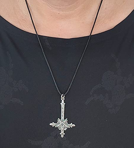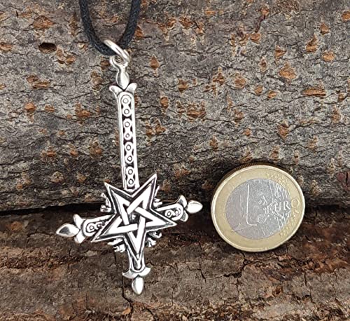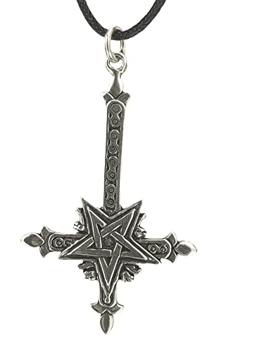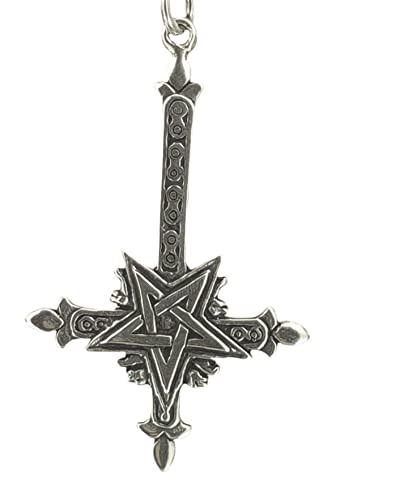 Combinazione di croce rovesciata e pentacolo in argento sterling 925.