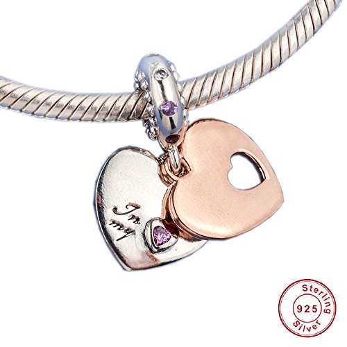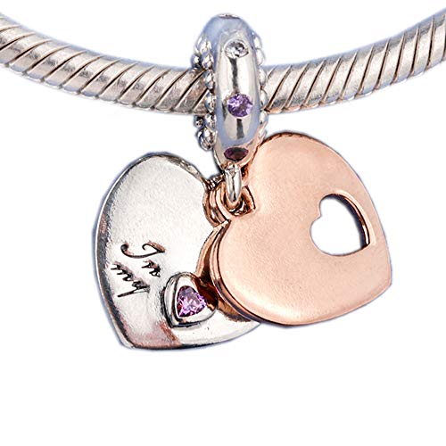 Ciondolo a forma di cuore per la festa della mamma, in argento 925,con cristalli rosa e lilla, con zirconia cubica trasparente, adatto per braccialetti Pandora originali, gioielli alla moda
