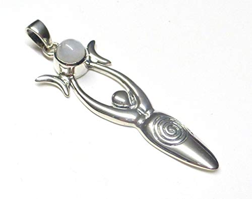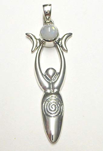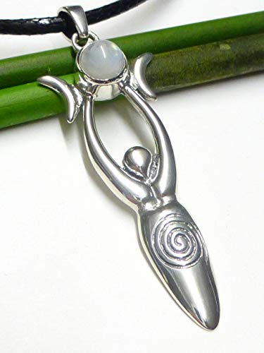 Ciondolo a forma di dea della luna, in argento, con vera pietra di luna, in argento Sterling, regalo, simbolo di protezione, Argento sterling