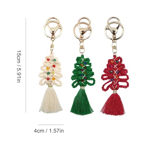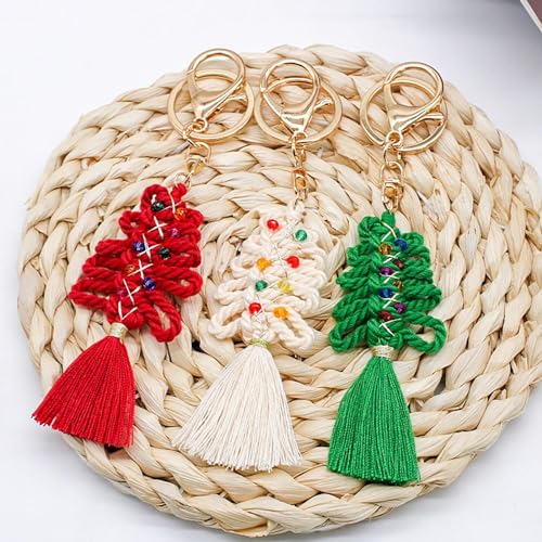 Ciondolo a forma di macrameo natalizio, in cotone con chiusura ad anello in metallo, decorazione stagionale per portachiavi, specchietto retrovisore, zaino, borsa a tracolla, albero di Natale