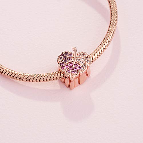 Ciondolo a forma di rosa con ciondolo a forma di foglia, colore: ciliegia e viola royal