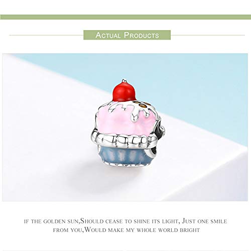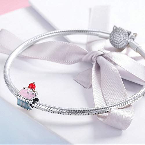 Ciondolo a forma di torta in argento Sterling 925 con smalto rosa, adatto per braccialetti in argento, regalo di San Valentino