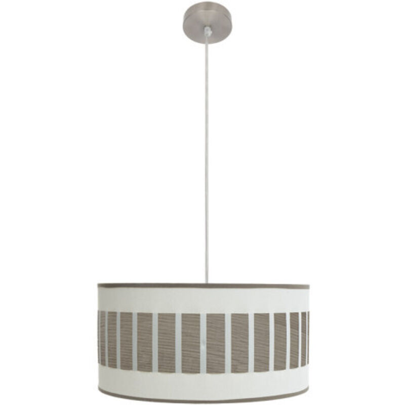 Pendente anni 80serie IVANNA colore NICKELcolore con schermo BIANCO/GRIGIO LEGNO. Ha una presaper E27. Lampadina non inclusa. Spicca il suo originale paralume cilindrico con inserti e nastro passante nei colori del legno, risultando in un accostamento molto moderno ed elegante, ideale per arredare e illuminare ingressi, salotti, uffici e soggiorni. Molto adatto sia per decorazioni rustiche che moderne o vintage. Ha dimensioni regolabili in altezza di 47