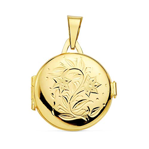 18k Ciondolo in oro PORTAFOTOS 21 mm. fiore dettaglio [AC1001] battuto