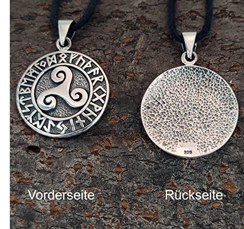 Pendente con triscele e rune in argento sterling 925 prodotto con maestria.