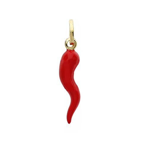 Ciondolo Unisex Corno Rosso Portafortuna in Oro Giallo + Collana Laccio in Omaggio