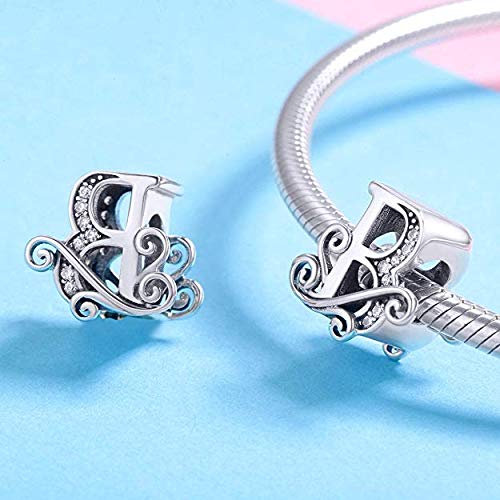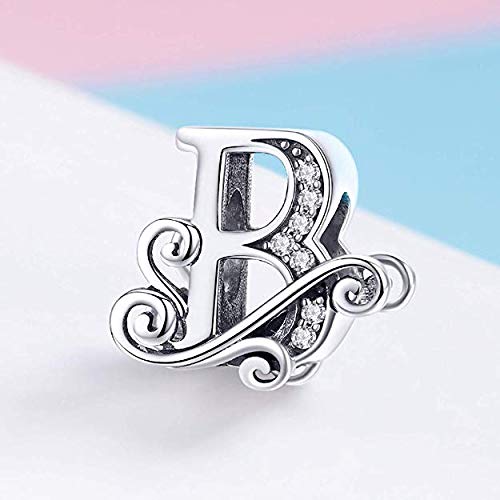 Ciondolo in vero argento Sterling 925 con iniziale A-Z, 26 lettere, per braccialetti da donna Pandora, Cristallo,