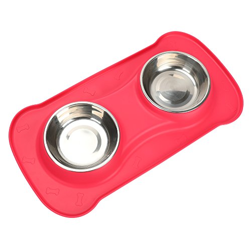 ACCIAIO INOX RESISTENTE ROSSA: Realizzato in acciaio inossidabile di alta qualità con fondo in silicone di alimento, entrambi i basamenti in silicone e la ciotola in acciaio inossidabile sono lavabili in lavastoviglie.