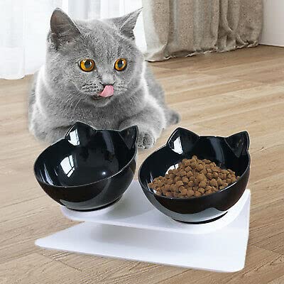 Ciotola per animali domestici, ciotola per gatti, inclinata, doppia ciotola per cibo per gatti, base antiscivolo, ciotola inclinata a 15°