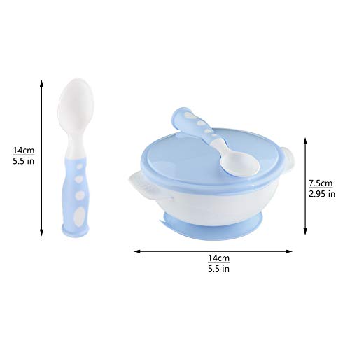 Ciotola Aspirazione Bambini, Set di 2 Ventose Ciotole Alimentazione Bambini, Ciotola per Alimenti Bambini Coperchi a Tenuta Stagna e Cucchiai In Silicone, Ciotola Ventose Bambino