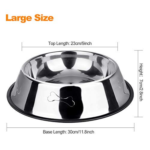 Ciotola per cani in acciaio inox, antiscivolo, 2 pezzi, in acciaio inox, con base in gomma antiscivolo per cibo o acqua, per cani di taglia media e grande