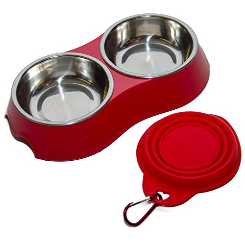 Ciotola per cani che Small Pets will Love. Acciaio inossidabile rimovibile per cibo per cani e acqua ciotola. Bonus pieghevole cane piatto per i viaggi