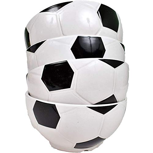 Ciotola Colazione Porcellana, 4 Ciotole Grandi, Muesli, Tè, Caffè al latte, Cioccolato, Zuppa, Ciotola Cereali Modello Pallone Da Calcio Nero e Bianco Per Calciatori e altri Diam.14,5 H.7,5 cm