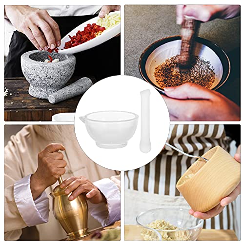 Ciotola di malta e malta di vetro, miscelatore e medicina, strumenti di macinazione per laboratorio di farmacia o scienza, ciotola di lucidatura della cucina
